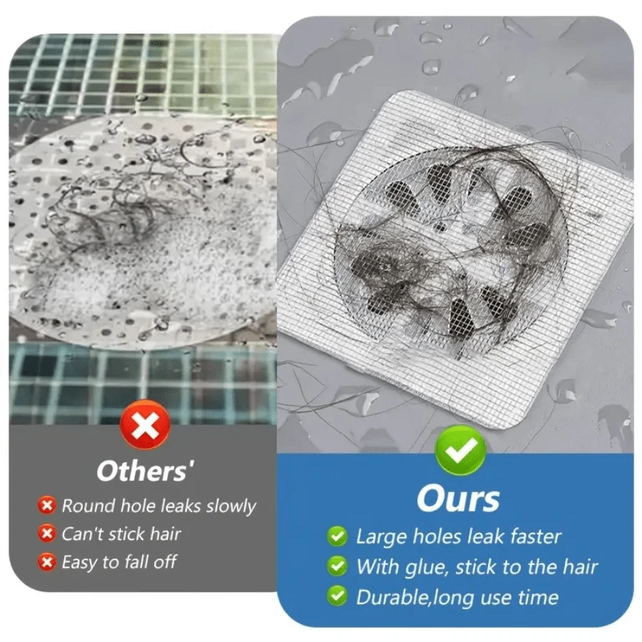 10 pcs Anti-Bug Self-Adhesive Bathroom Hair Strainer | Kitchen Anti-Clogging Mesh – PVC Drain Sticker 🌟