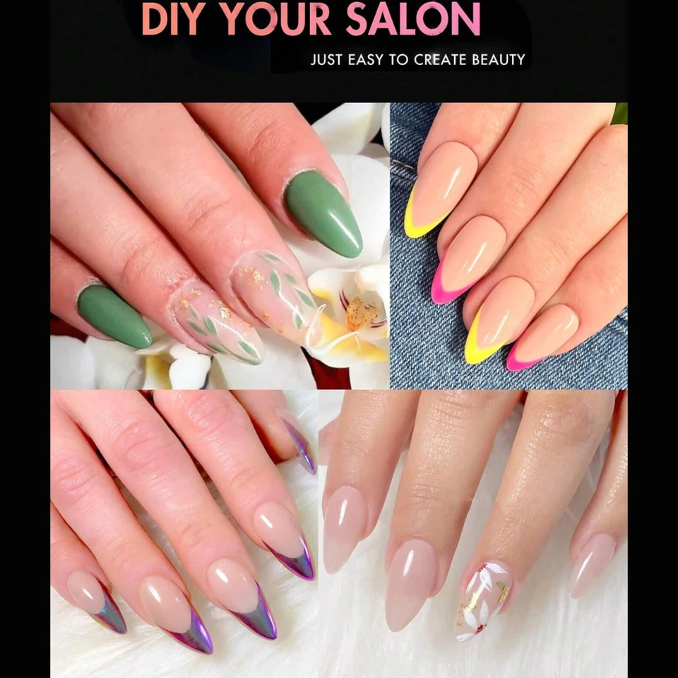 120 Pcs Nail Extension Transparent Almond Nail Tip Fully Covered with Soft Gel – Perfect for Salon & DIY Use! 💅✨