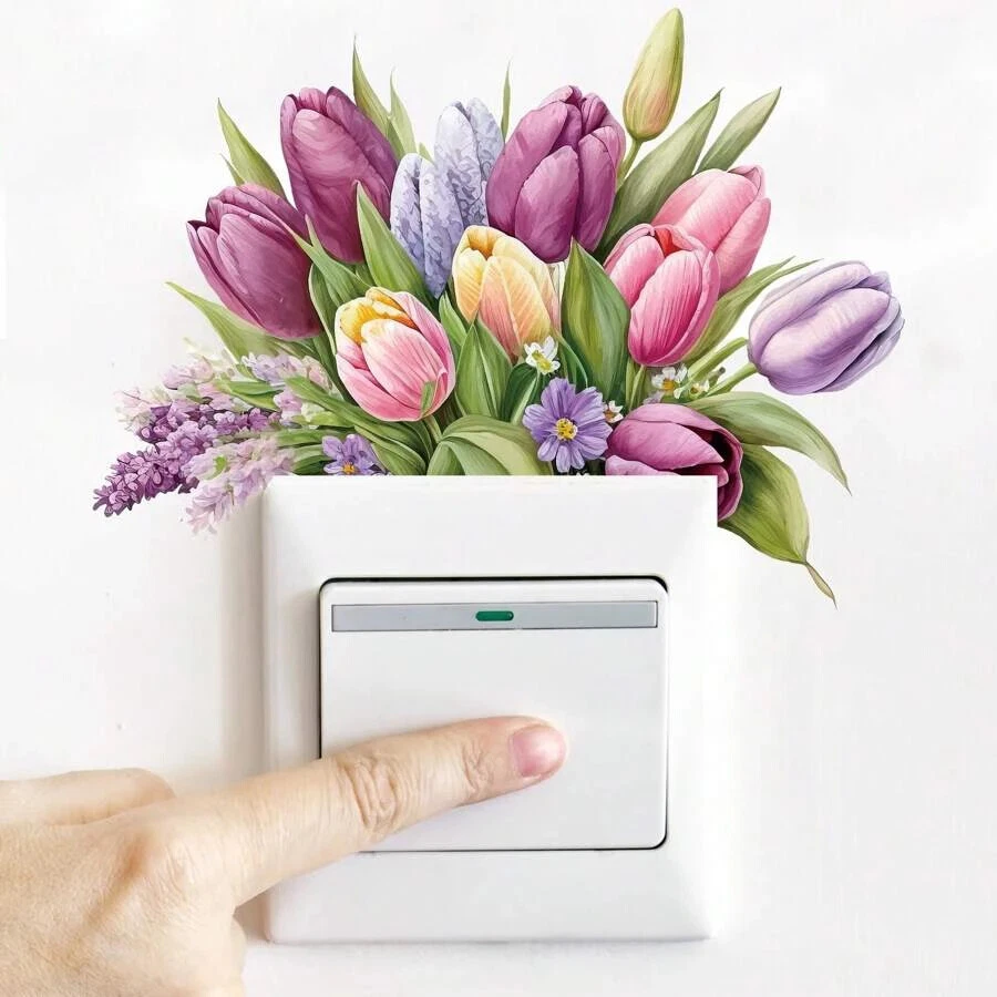 Transform any room into a serene, nature-themed oasis with this 1 Pc 3D Tulip Flower Switch Wall Decal!