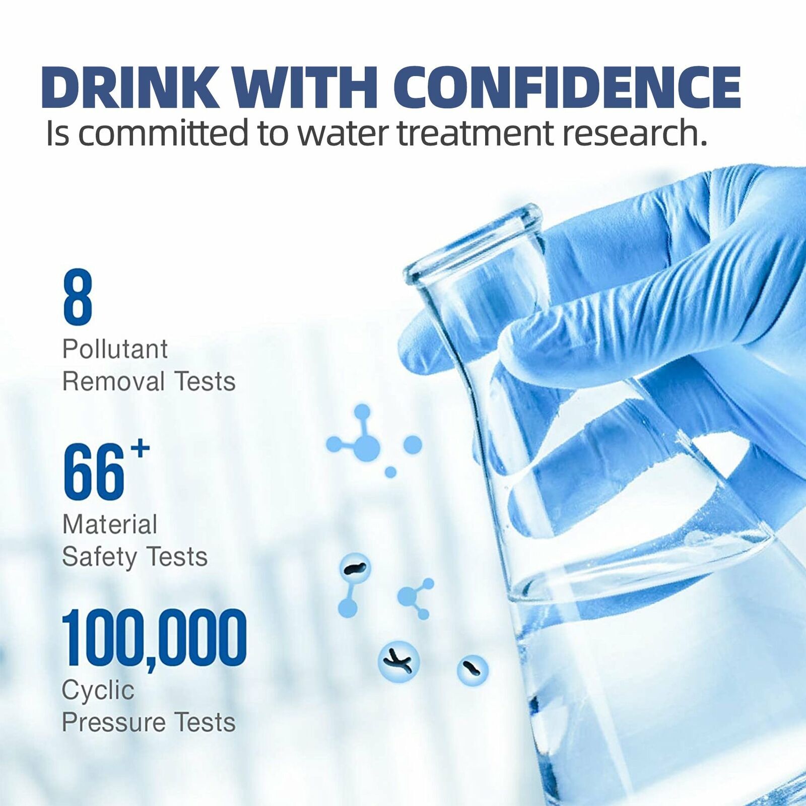 - NSF certified to standards 42, 53, and 401 to remove up to 99% of select chemicals, pharmaceuticals, pesticides, herbicides, and heavy metals