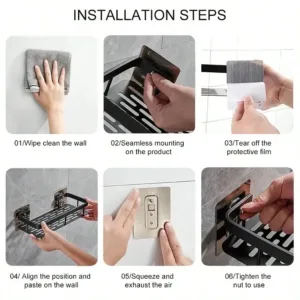 ✨ Effortless Installation: No drills, no mess! Easily install this sleek shower caddy with strong adhesive, perfect for a hassle-free setup in minutes.