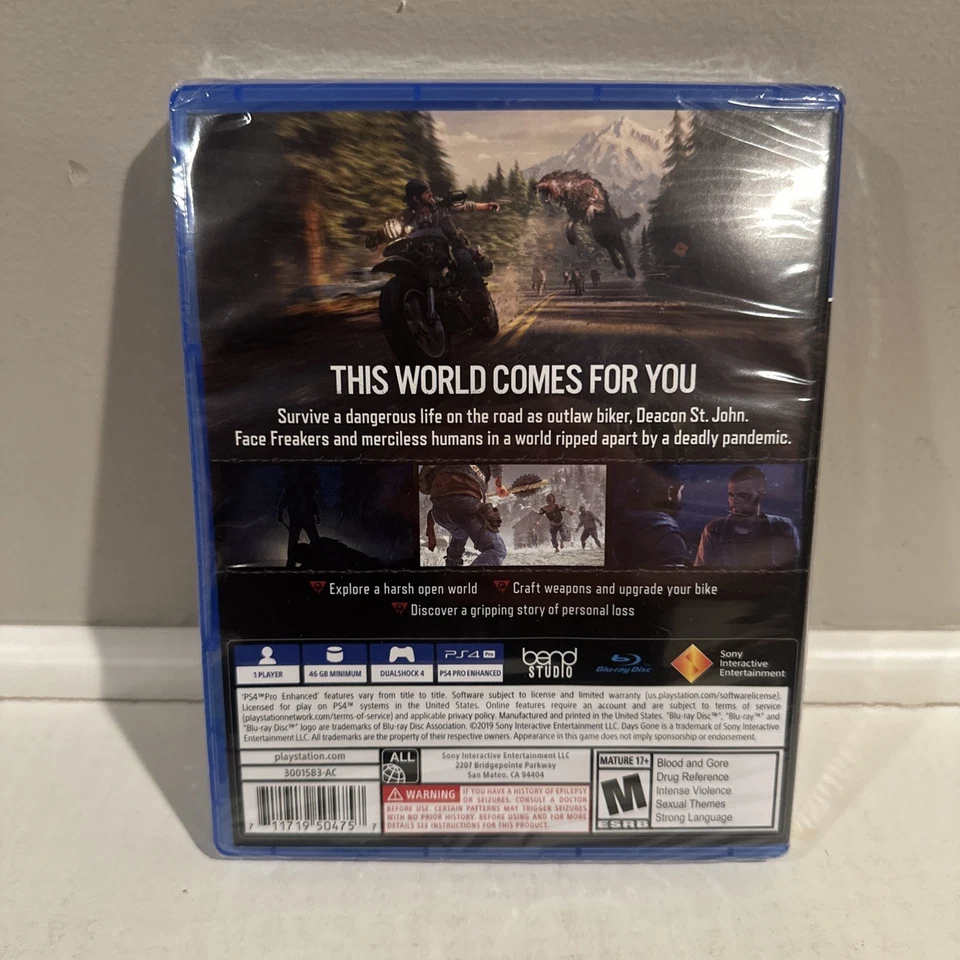 he product is “Days Gone” for Sony PlayStation 4, a survival action game published by Sony in 2019. The game belongs to the “Days Gone” video game series and has a CERO Z rating, indicating it is suitable for players aged 18 and above in Japan. It is a NTSC-J region code game complete with disc and case, offering an action-packed adventure experience on the Sony PlayStation 4 platform.