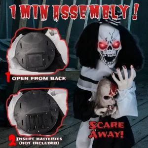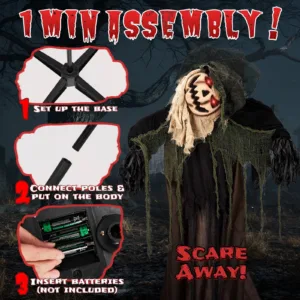 3. Easy 1-Minute Assembly: No tools required—simply connect the base and poles, install the body, insert batteries, and you’re ready to scare.