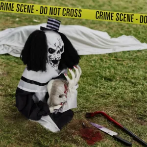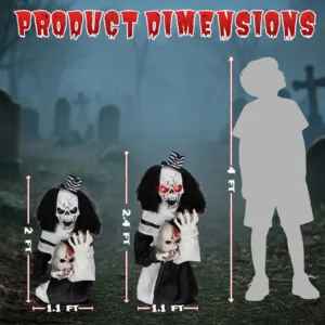 Add a chilling twist to your Halloween setup with this 1.8ft sound-activated scary clown decoration. Perfectly sized for tables, porches, or garden displays, this spooky prop springs to life with flashing red eyes, eerie sound effects, and a sudden bouncing motion when triggered by noise. Compact yet terrifying, it’s an ideal choice for haunted house scenes, Halloween parties, or creepy corners in your home. Battery-powered for easy placement anywhere—no wires, no hassle—just pure fright fun.