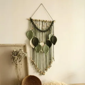 Bring harmony to any room with this stunning wall hanging. Whether it’s placed in your living room, study, or even a hotel lobby, it effortlessly enhances the aesthetic of your space. This macramé leaf decor is perfect for those looking to create a serene and welcoming environment.