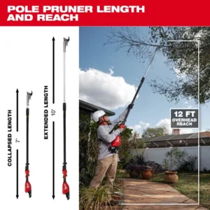 - 7′ – 10′ Telescoping Length – Attachment Free Extended Reach Pruning Up to 10′