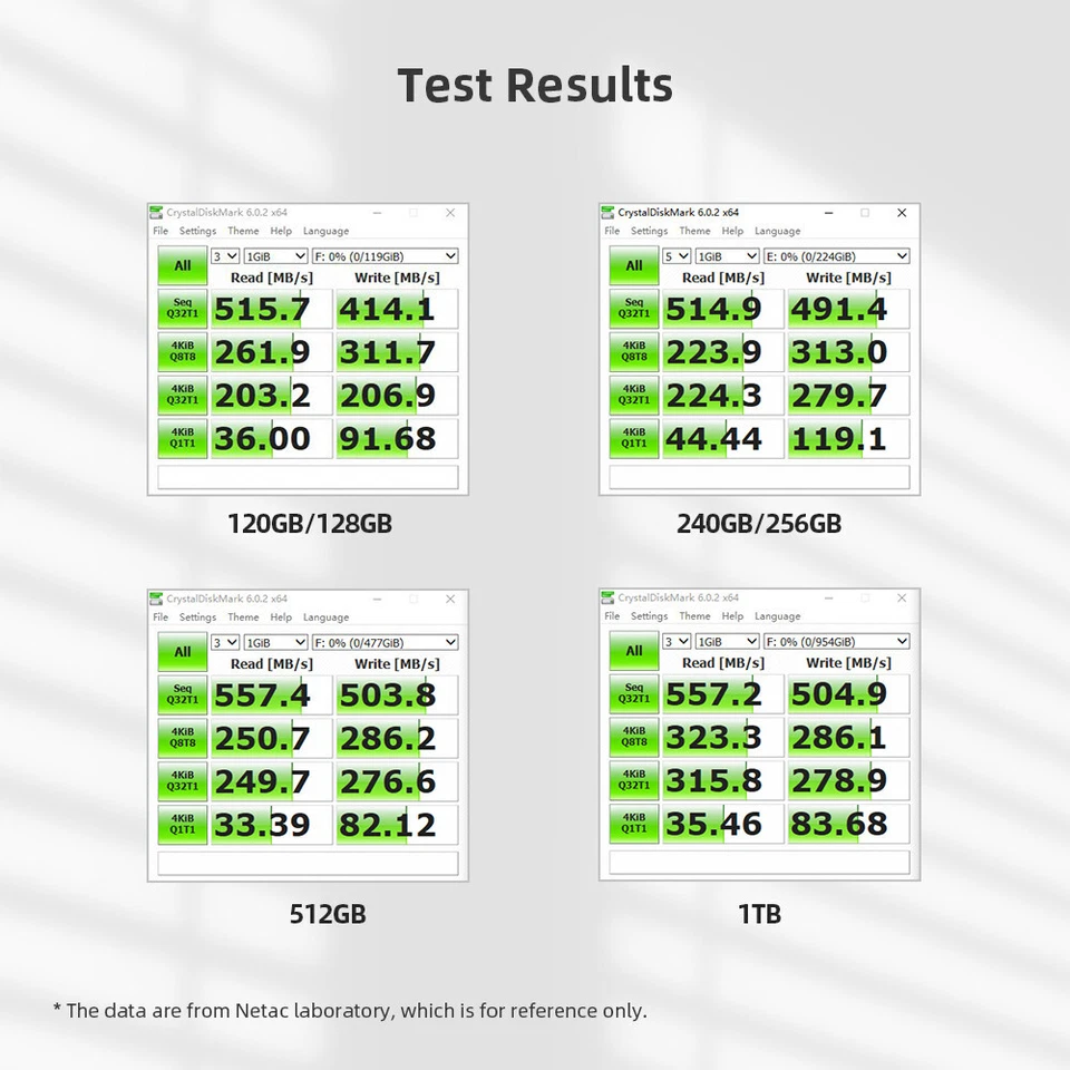 - With capacities up to 1TB, Netac internal SSD has enough space for digital content. Ideal for transferring large-sized data including 4K videos, high-resolution photos, games and more.