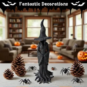 Unique Design: The statue features a classic witch image, complete with a pointed hat and broomstick. Its unique and mysterious design is perfect for Halloween decorations. This design instantly draws attention and adds to the festive atmosphere.