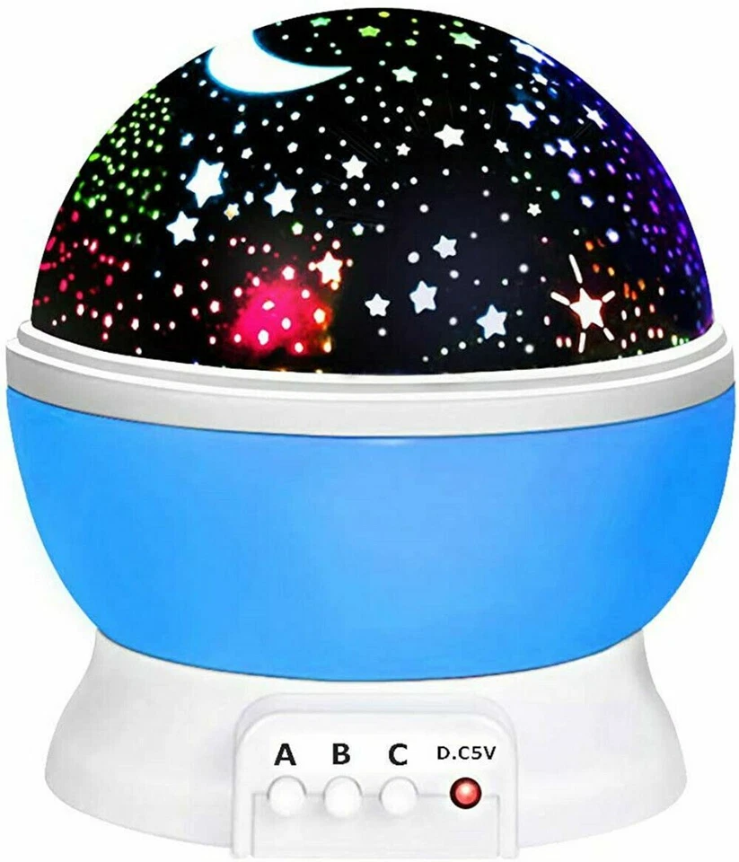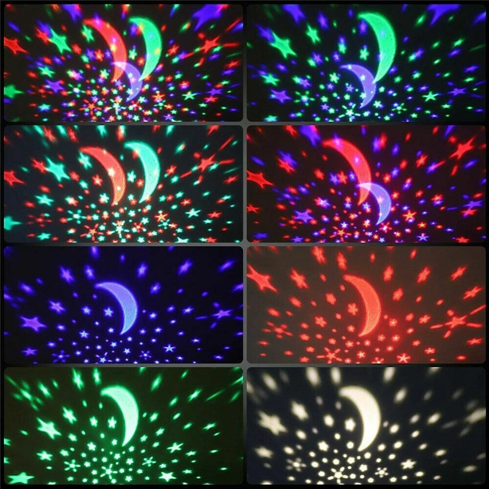 - *GREAT GIFT: Our rotating LED starry sky projection night light which can project moon and stars with different colors onto the walls and ceiling is a great gift to pleasure your kids and also a great decoration to create atmosphere for different events.