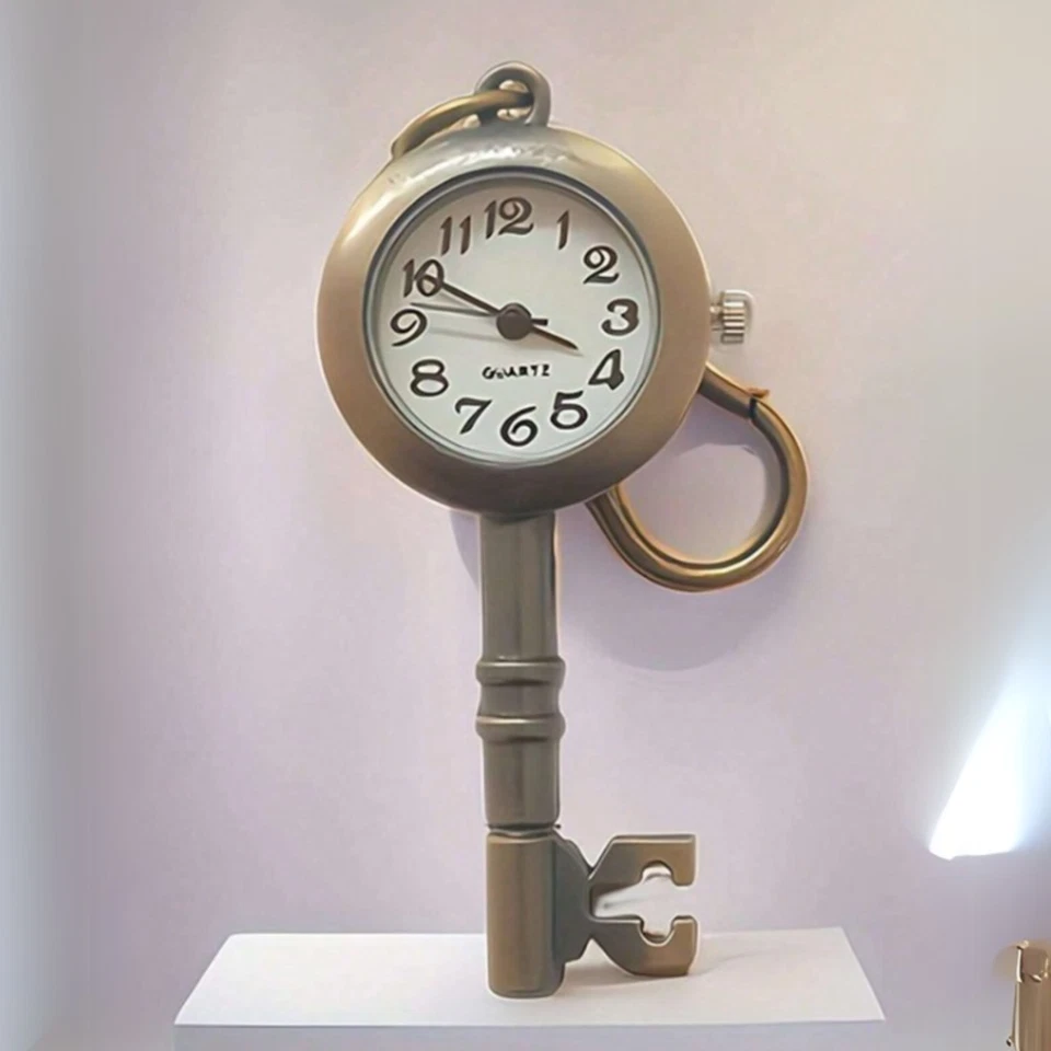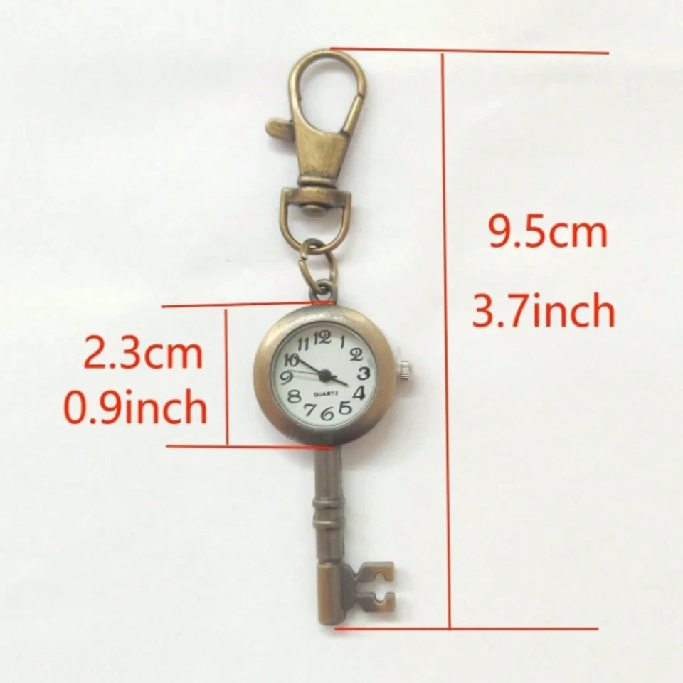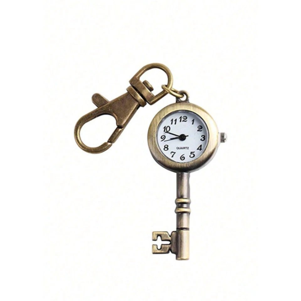 Stylishly crafted in the shape of an antique key, this pocket watch keychain adds timeless elegance to bags, keys, or outfits. -